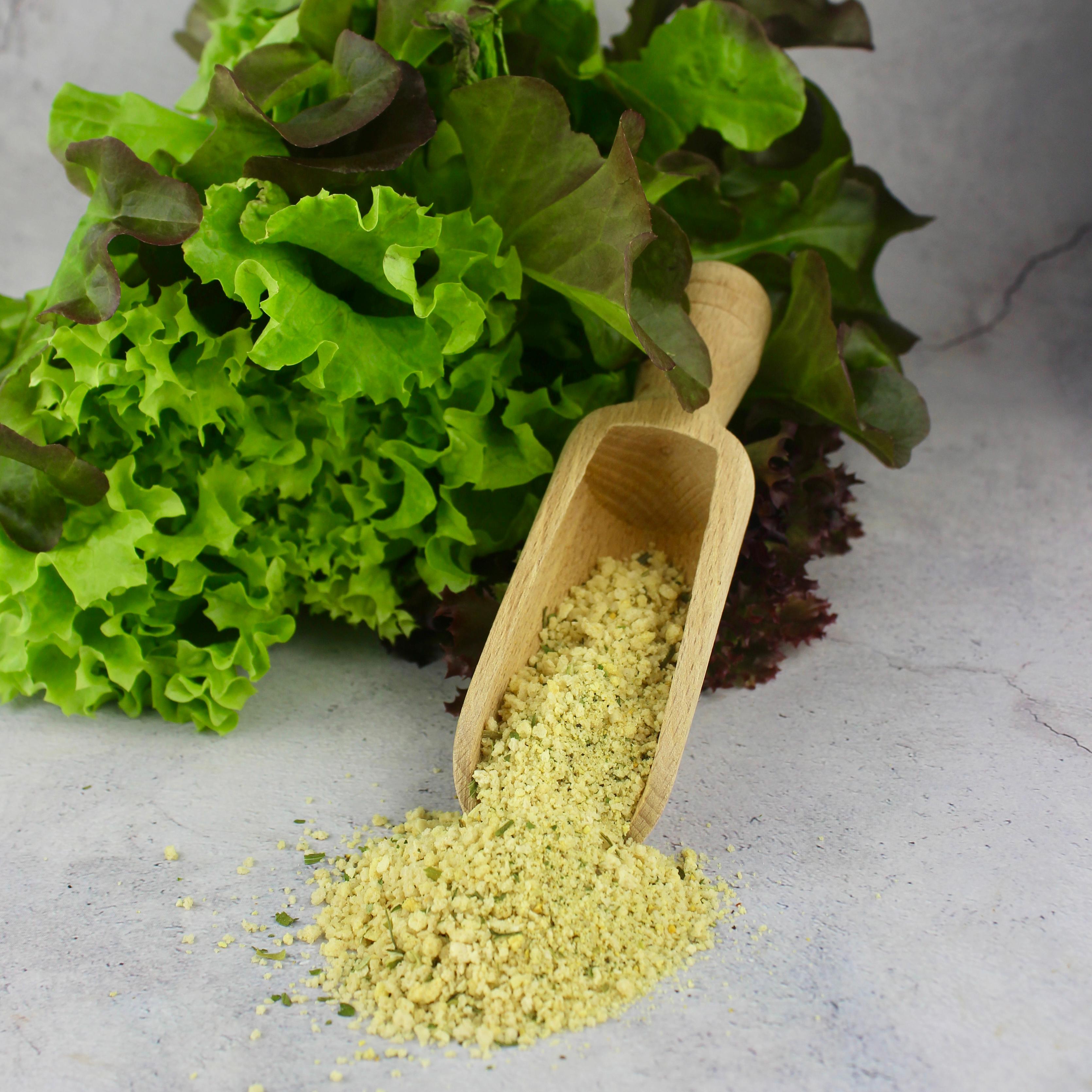 Zutaten: Paniermehl (Weizenmehl, Rapsöl, Traubenzucker, Hefe, Speisesalz), Jodsalz, Pfeffer, Zitronenschalen, Curcuma, Paprika, Schnitlauch Petersilie, Zwiebeln, Knoblauch, Zitronensäuere E330, Cirronenöl, Gewürzetrakt (Curcuma)